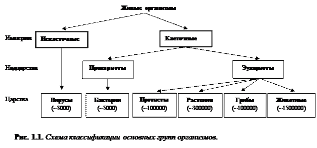 Все множество живых организмов распределяется, или классифицируется по определенной системе иерархически соподчиненных групп – таксономических категорий. Самой высокой таксономической категорией, которую выделяют многие современные ученые, является империя. В настоящее время выделяют две империи – неклеточные организмы и клеточные организмы. Неклеточные формы жизни обладают одним общим свойством – находясь вне клетки, они не могут размножаться и у них не происходит обмен веществ. Они являются внутриклеточными паразитами на генетическом уровне. Это вирусы, которые составляют одноименное царство. Они распространены в природе повсеместно и поражают все группы живых организмов.