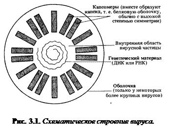 Сложные вирусы (например, герпеса или гриппа) кроме, белков капсида и нуклеиновой кислоты содержат дополнительную липопротеидную мембрану (оболочку, суперкапсид образуемый из плазматической мембраны клетки хозяина), различные углеводы и ферменты (рис.3.1).