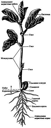 Основные вегетативные органы растений – листостебельный побег (обеспечивает фотосинтез) и корень (обеспечивает водоснабжение и минеральное питание) (рис. 5.1.).