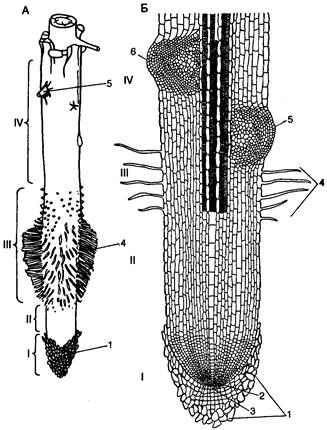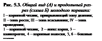 Различные части корня выполняют неодинаковые функции и характеризуются определенными морфологическими особенностями. Эти части получили название зон корня (рис. 5.3.):