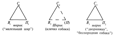 Графически эти переходы можно изобразить следующими треугольниками, где С – слово, В – вещь, П – понятие.