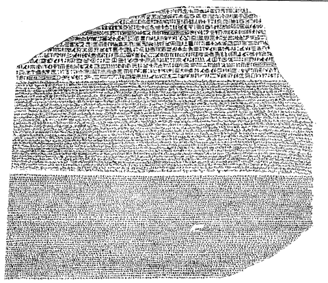 Рис. 21. Розетский камень, благодаря находке которого Ф. Шампольон смог приблизиться к дешифровке древнеегипетских иероглифов, так как надпись содержала передачу одного и того же текста вверху древнеегипетскими иероглифами, посередине -древнеегипетским демотическим письмом, а внизу был дан перевод текста на древнегреческий язык.