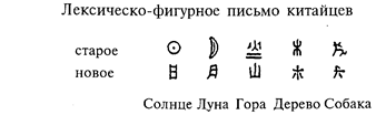 С развитием понятий и абстрактного мышления возникают такие потребности письма, которые пиктография уже не может выполнять, и тогда возникает идеография1, т. е. «письмо понятиями», когда обозначаемым является не сам жизненный факт в его непосредственной данности, а те понятия, которые возникают в сознании человека и требуют своего выражения на письме.