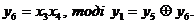 b. При довільному числі змінних ця функція дорівнює одиниці, якщо число одиниць в наборі вхідних змінних непарній. Іноді ця функція називається функцією перевірки на парність.