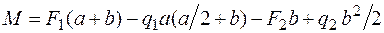 – равнодействующая равномерно распределенной нагрузки, действующей слева от сечения.