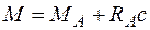 Прежде всего, найдем опорные реакции. Балка имеет жесткое защемление на правом конце[4] и в этом закреплении при заданной вертикальной нагрузке возникают две опорные реакции: вертикальная реакция RA и реактивный момент MA. Горизонтальная реакция при действии вертикальной нагрузки равна нулю. Это следует из уравнения равновесия "сумма проекций всех сил на горизонтальную ось равна нулю". Определим RA и MA, используя два других уравнения статики. Желательно составлять такие уравнения, в каждое из которых входит только одна неизвестная. В данном случае такими уравнениями являются "сумма проекций всех сил на вертикальную ось (ось z) равна нулю" и "сумма моментов всех сил относительно точки А равна нулю":