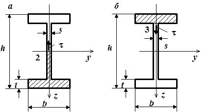 В этой формуле первое слагаемое – статический момент полки, а второе – статический момент половины стенки. Заметим, что для стандартных двутавров статический момент половины сечения задан в сортаменте (обозначен