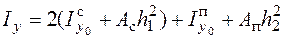 Теперь определим осевой момент инерции относительно оси y. Находим его как сумму моментов инерции трех фигур: двух стенок (