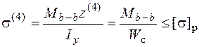 Наконец, условие прочности в точке 3, где действуют и нормальные (растягивающие), и касательные напряжения, записываем по теории прочности для "балочного" напряженного состояния, справедливой для хрупкого материала, например по теории Мора (4.8). Нормальные и касательные напряжения в этой точке определяем по формулам (4.1) и (4.2).