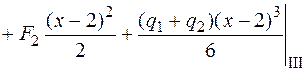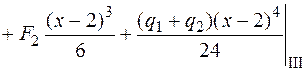 , и это сечение находится на третьем участке балки, поэтому подставляем х = 4 м в выражение для прогибов, используя слагаемые на всех трех участках: