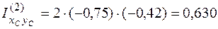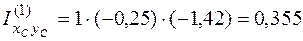 Найдем центробежный момент инерции. Момент инерции каждого прямоугольника определим по формуле (4.36). Обратим внимание на то, что, если при вычислении осевых моментов инерции знаки координат а и b можно опускать, так как они входят в формулы (4.34), (4.35) в квадрате, то при вычислении центробежного момента инерции эти знаки следует обязательно учитывать. Тогда