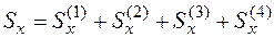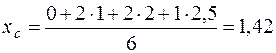 Статический момент относительно оси х равен сумме статических моментов четырех прямоугольников единичной толщины: