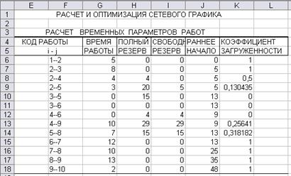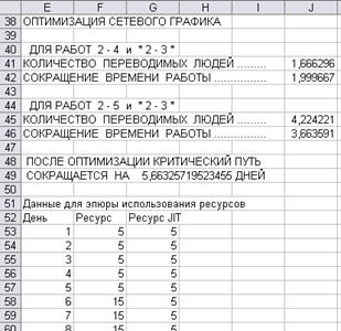 Рис. 56. Решение оптимизационной задачи сетевого планирования