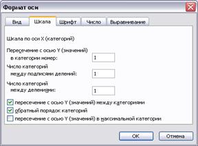 После нажатия кнопки Готово получаем заготовку графика, которую ещё необходимо отформатировать. Далее, с помощью контекстного меню, вызываемого правой кнопкой мыши следует удалить серый фон диаграммы, установить требуемый размер шрифта надписей и цифр на шкалах, для вывода всех кодов работ установить Число категорий между подписями делений равным единице. Также следует установить Обратный порядок категорий для отображения графика Ганта ступенями сверху вниз.