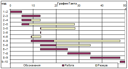 Для построения календарного плана-графика выполнения работ – графика Ганта используется таблица временных параметров работ (рис. 43 - 49).