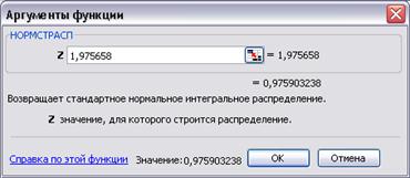 Для расчёта вероятности можно использовать функцию НОРМСТРАСП из категории Статистические Excel (рис. 54).