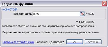 Максимальный срок выполнения всего комплекса работ Т при заданном уровне вероятности р = 0,95. Для получения величины Z можно использовать функцию НОРМСТОБР из категории Статистические Excel (рис. 55).