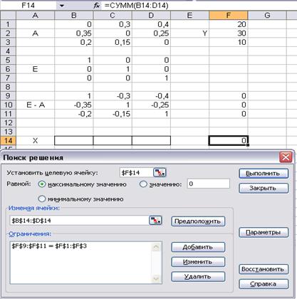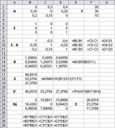 Рис. 66. Результата решения задачи межотраслевого баланса