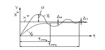 Максимальное отклонение регулируемой величины параметра от номинальной величины параметра называется величиной перерегулирования, обозначается s, и является одной из основных величин, характеризующих переходной процесс в колебательном звене. Например, для необратимого процесса, у привода подачи металлообрабатывающего станка, s не превышает 10-15%. Для обратимого процесса, при использовании авиационных систем навигации, s может принимать значение до 30%.
