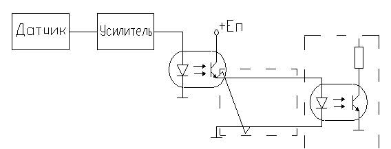 Для улучшения защиты от электромагнитных помех и для синхронизации используют оптоэлектронные элементы или оптроны. На рисунке 48 схематически изображен канал передачи информации.