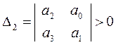 Если коэффициент a0 положителен, то устойчивость системы, описанной имеющимся характеристическим уравнением, будет вытекать из положительности D1 и D2 , т.е.: