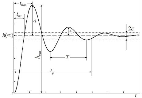 Прямые показатели качества могут быть определены с помощью временных характеристик – переходной функции h (t) по входным параметрам или импульсной переходной функции w(t) по параметрам внешнего воздействия.