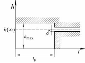 Основными показателями переходной функции h (t) в колебательном переходном процессе являются перерегулирование σ и время регулирования tр. Как уже отмечалось ранее в п. 2.1.1., перерегулированием называется максимальное отклонение регулируемой величины параметра от установившейся величины параметра. Например, для рассматриваемого случая перерегулирование будет выражаться в следующем виде:
