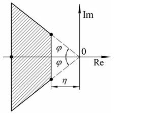 Рассмотрим корневые показатели качества регулирования. Переходной процесс в системе характеризуется ее передаточной функцией W(р). В случае, когда в числителе переходной функции отсутствуют нули, система характеризуется полюсами, т.е. корнями характеристического уравнения системы A (р). На комплексной плоскости можно обозначить область расположения корней данного уравнения при A(р) = 0, которая чаще всего принимает форму трапеции, на сторонах и основании которой располагаются корни, как изображено на рисунке 90.