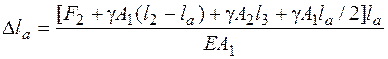 Удлинение D la происходит под действием сосредоточенной силы, состоящей из силы F 2, веса участков стержня, расположенных ниже сечения а–а, и собственного веса участка
