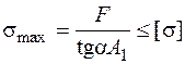 Из условия прочности этого стержня получим значение допускаемой нагрузки: