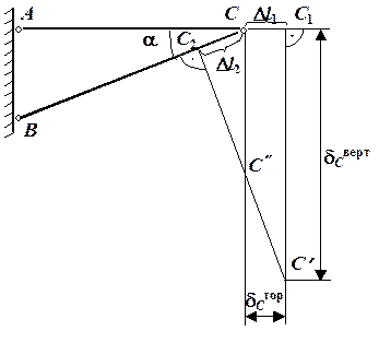 на рис. 1.7. Вертикальное и горизонтальное перемещение узла C допускается определять по масштабу, не делая сложных геометрических выкладок.