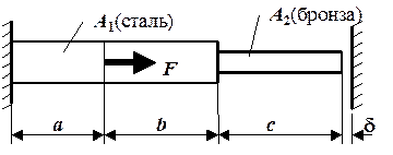 , выполненный из разного материала, загружен силой F (рис. 1.8). Между правым концом стержня и стенкой существует зазор