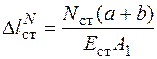2) уравнение совместности деформаций, смысл которого в данной задаче очень простой: полная деформация стержня равна заданному зазору. При составлении уравнения совместности деформаций важно, чтобы знаки абсолютных деформаций соответствовали сделанным предположениям о направлении усилий. В нашем примере