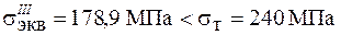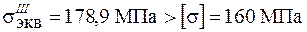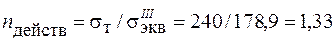 Условие прочности не выполнено и согласно четвертой теории. Однако фактический коэффициент запаса оказывается другим: