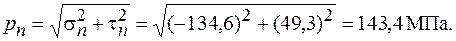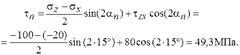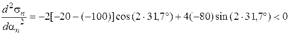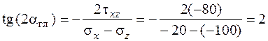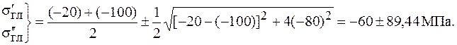 Знак отрицательный, следовательно, по этой площадке действует бóльшее из найденных главных напряжений – напряжение