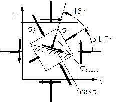 Рис. 2.7. Площадка с максимальным касательным напряжением