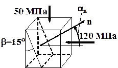 2) найти величины наибольшего касательного напряжения и соответствующего ему нормального напряжения, показать положение площадки, на которой эти напряжения действуют;