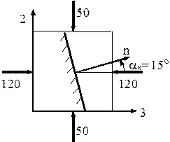 На гранях элементарного параллелепипеда заданы главные напряжения (рис. 2.14). Материал элемента – чугун c характеристиками