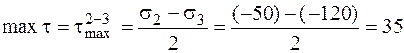 справедлива для площадок, перпендикулярных плоскости чертежа. Максимальное для таких площадок касательное напряжение