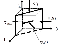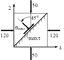 Заданный элемент ограничен главными площадками, поэтому сразу нумеруем главные напряжения по убыванию (