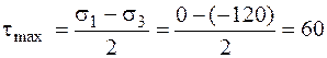 Максимальное касательное напряжение (максимум вычисляется для всех возможных площадок, проведенных через точку) и соответствующее ему нормальное напряжение имеют величины