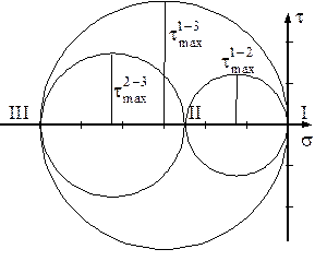 На рис. 2.19 показаны все три круга напряжений. Видно, что площадке с наибольшим по модулю касательным напряжением