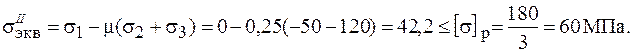 Видим, что первая теория прочности не годится для оценки прочности, так как она выдает в рассматриваемой ситуации неправдоподобный результат: при любом уровне напряжений прочность обеспечена.