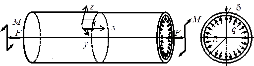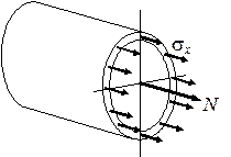 Рис. 2.21. Тонкостенная труба под действием внутреннего