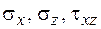 Напряжения в трубе обозначаем, используя местную декартову систему координат x, y, z: ось x параллельна оси трубы, ось z направлена по касательной к срединной линии поперечного сечения, осью y служит продолжение радиуса R.