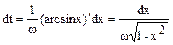 Множитель2 введен потому, что за период Т точка побывает в указанном интервале дважды. Выражая время dt через dx, и учитавая, что Т=2p/w, имеем