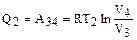 Точка 1 (рис.2.5.1) отвечает начальным параметрам системы при температуре Т1, Участок кривой 1 – 2 представляет собой изотермический процесс, при котором газ совершает работу расширения от объема V1 до V2, и получает количество теплоты Q1 от источника тепла при постоянной температуре Т1. Для одного моля газа работу расширения можно определить по формуле