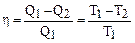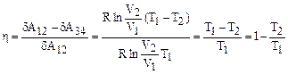 Полученный замкнутый обратимый цикл Карно является идеальным. В нем отсутствуют необратимые процессы, И поэтому он наиболее эффективен при преобразовании тепла в работу. Порядок процессов цикла 1-2-3-4-1 соответствует режиму теплового двигателя, 1-4-3-2-1 режиму холодильной машины. Согласно формулам (2.2.9) и (2.2.11), коэффициент полезного действия такой идеальной тепловой машины