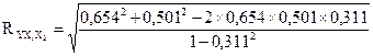 Степень совокупного влияния факторных признаков на производительность труда можно выразить коэффициентом множественной корреляции: