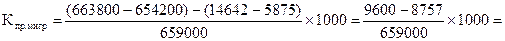 Кпр= Кпр.ест + Кпр.мигр = (Крожд – Ксм) + Кпр.мигр = (22 – 9) + 4 = 17 ‰.